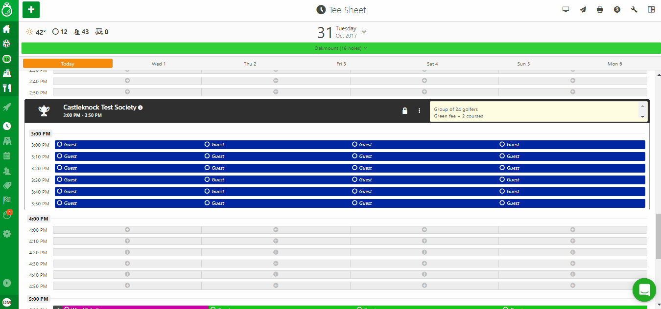 - Click on the "+" sign in the fourth slot of the first tee time.