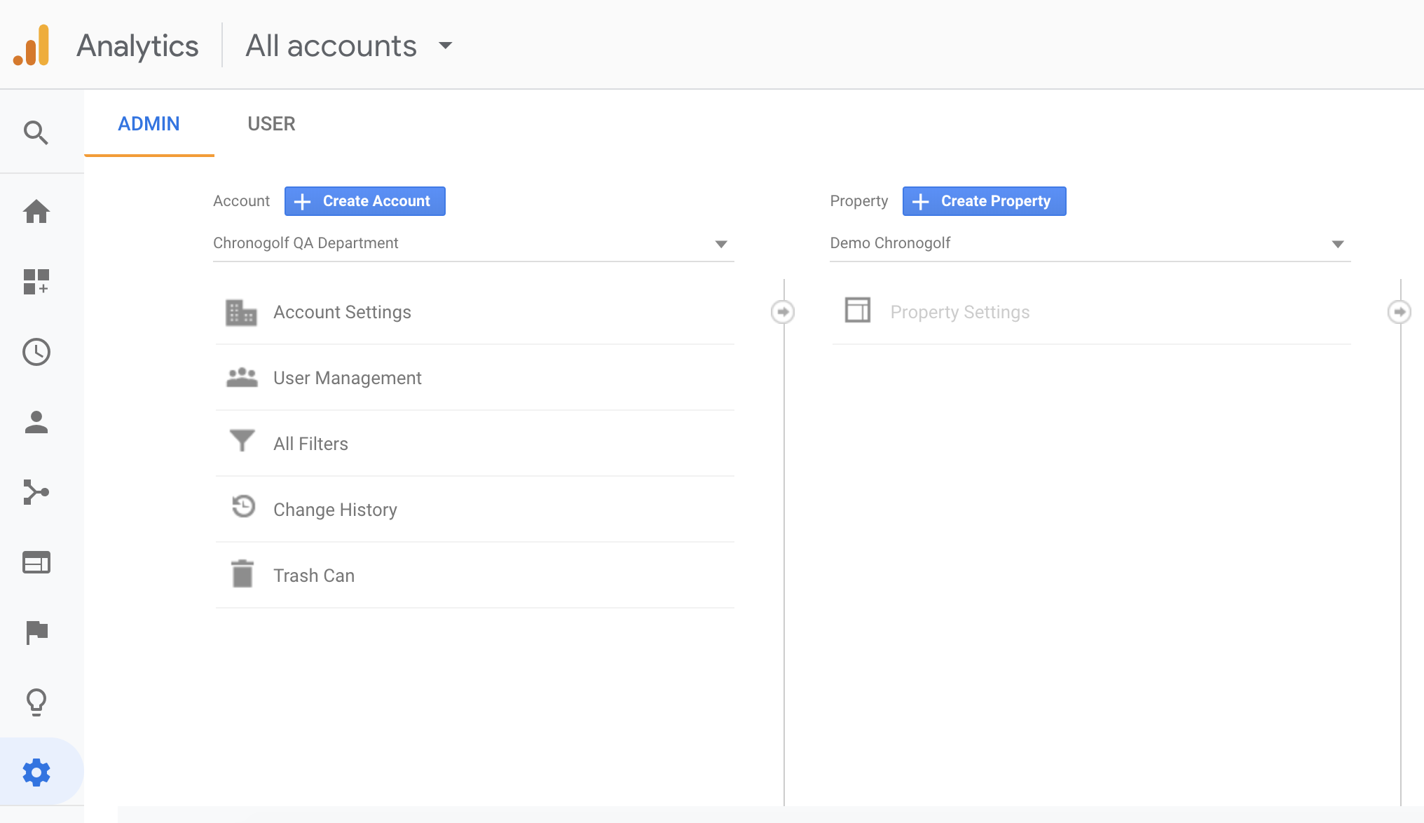 In oder to use Google Analytics on your website, you will first need to set up a Google Analytics account, which can be done here. Next, log in, and click on the gear symbol in the sidebar marked "admin". Click on "create property", then enter in your course's info.