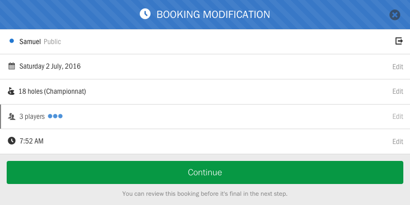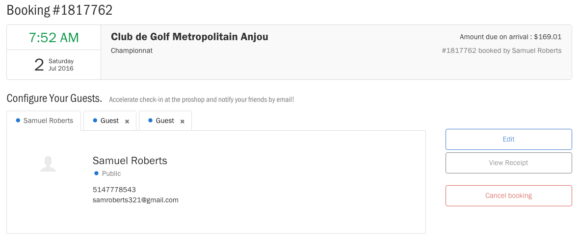 - Log in your profile on www.chronogolf.com and click on ‘’cancel’’ next to your tee-time.