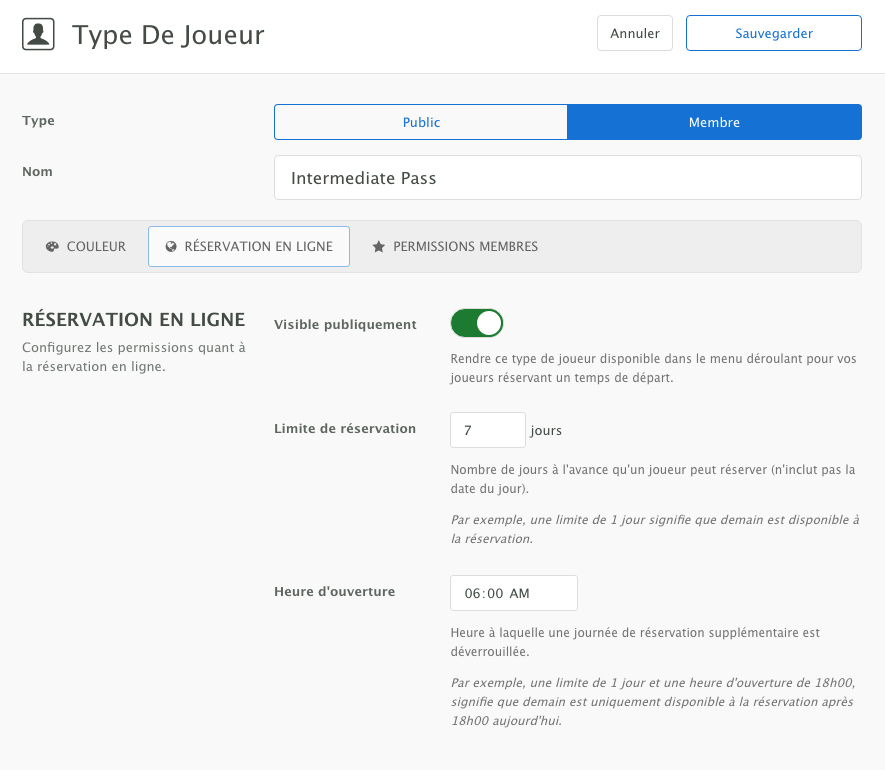 Pour définir le nombre de jours à l'avance auquel vos joueurs peuvent réserver en ligne, suivez les étapes suivantes:
