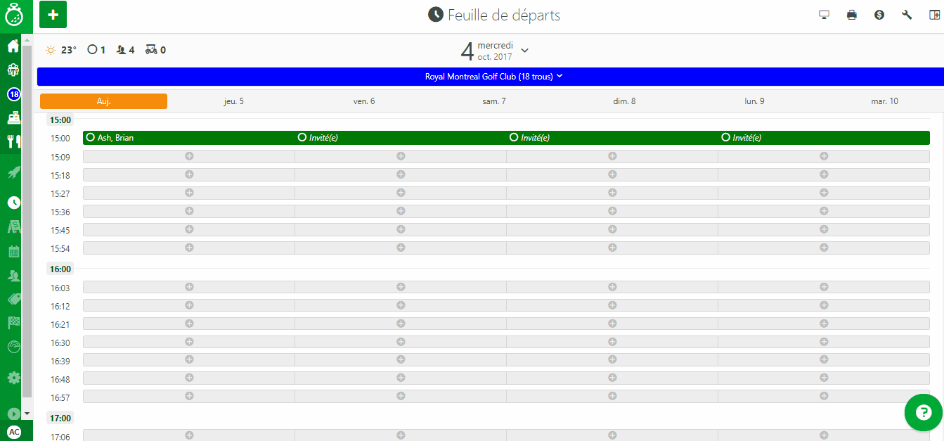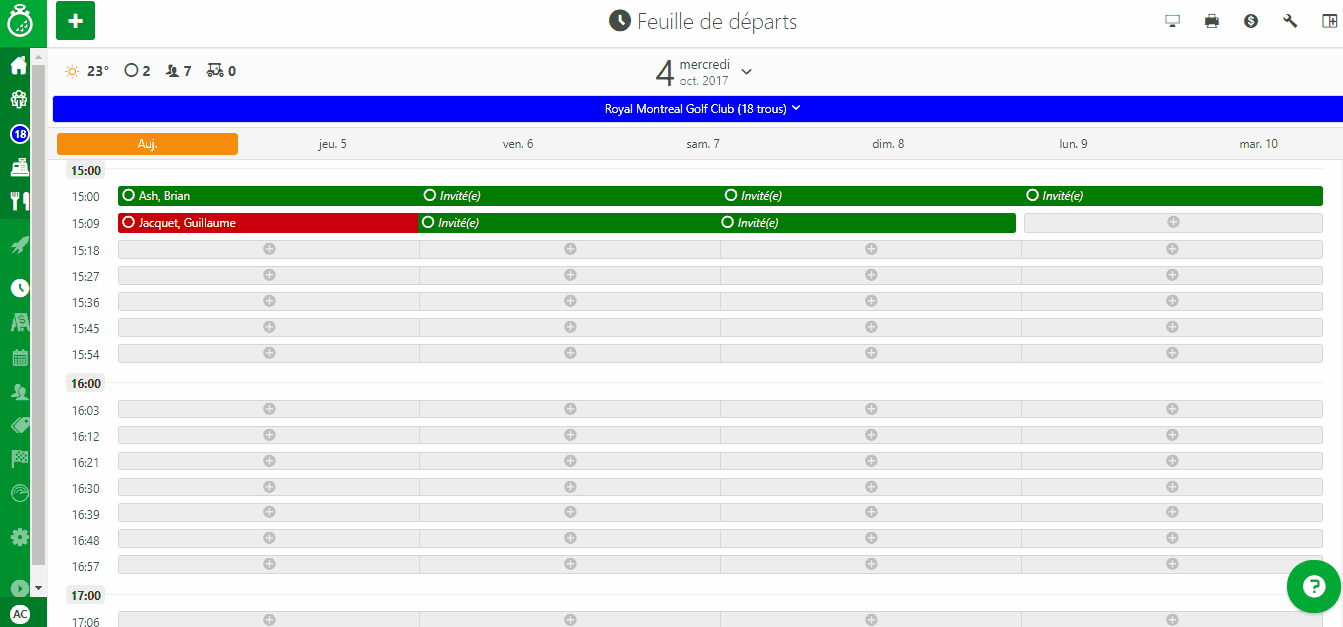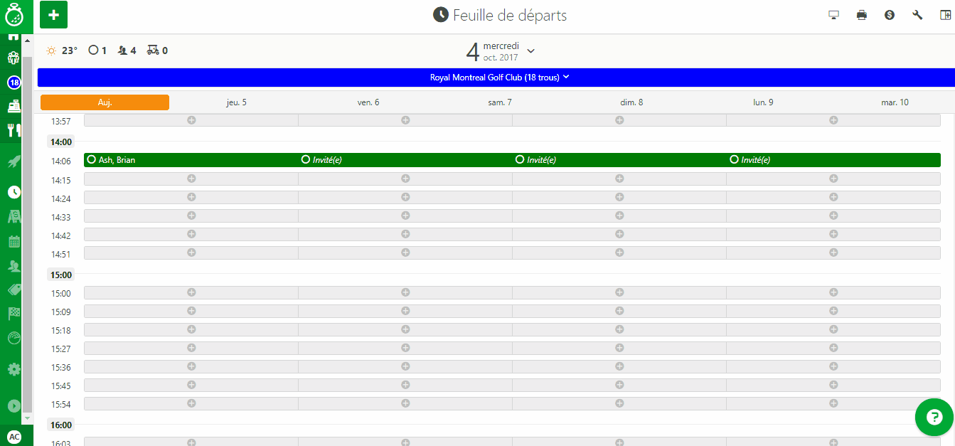 Une autre application utile pour cette fonction est la capacité de compléter des paiements pour un "no-show" directement sur la feuille de départs. Dès qu'on a coché les joueurs applicables comme des "no-shows", le flux de travail reste le même. Complétez le processus et chargez la carte. Les statistiques des "no-shows" seront affichées immédiatement dans la nouvelle section de report "no-show".